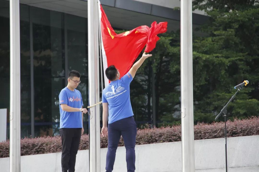 早晨8点半,参与“大学之道”课程的新生们,以苑舍为单位在中和广场参加了升旗仪式。