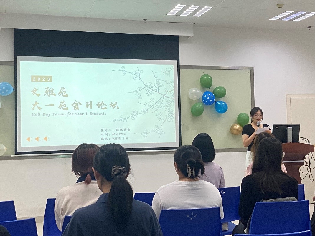 为了让刚迈入大学生活的大一新生更好地规划四年大学生活,文雅苑学生委员会于2023年10月25日在T4师生活动中心举办了一场主题为“留学经验分享”的文雅苑大一苑舍日论坛。在这次活动中,我们不仅邀请了文雅苑的舍监和副舍监,而且特别邀请了陈湛博士作为论坛的主讲人,与学生们分享留学的经验和见解。