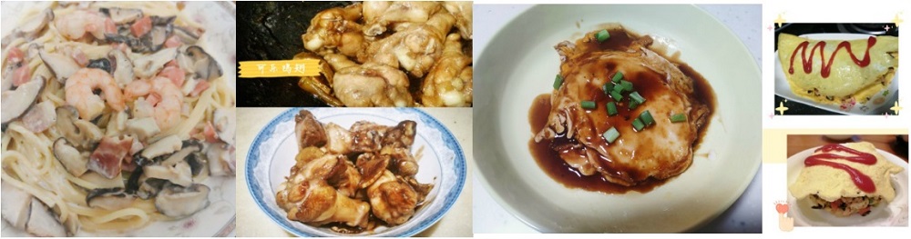 其次有蒸炒类,分别是用料十足的奶油蘑菇意粉、注入灵魂的可乐鸡翅、酸酸甜甜的糖醋荷包蛋和一看就很专业的蛋包饭。