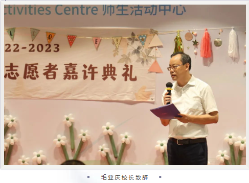 毛亚庆校长说:“这一年我们还一起经历了很多重要的时刻,大家在这个过程里展现出来的勇气、责任、关爱,对学校而言是巨大的支持,我们见证了人性的关怀,见证了同学们互相支持的力量。”