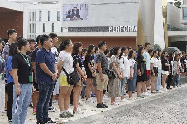 早晨8点半,参与“大学之道”课程的新生们,以苑舍为单位在中和广场参加了升旗仪式。