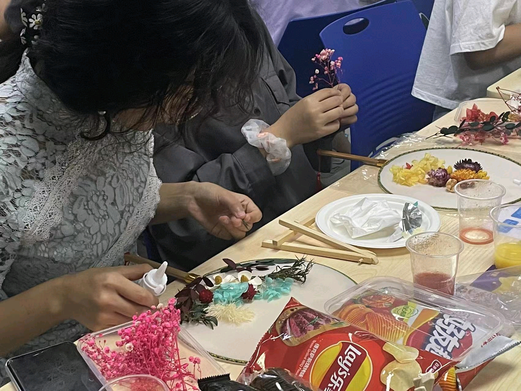 在讲解过后,同学们结伴享用茶歇,制作精美团扇。笑声一片,创雅苑同学们都非常投入。