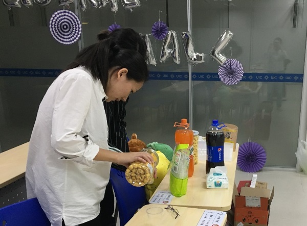 活动还设置饮料零食自助区,让同学们可以在观影时自行选取。