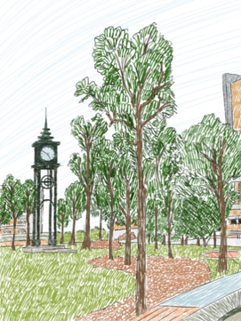 这幅画作的名字叫《钟楼》。记得它才出现在校园里的时候,我对它充满了怨念,因为每天早晨七八点,它就会准时响起,将我从甜美的梦想中唤醒,让我没有办法睡懒觉。可是后来它却成了我每天上课的指引。去教室的路上,总会抬头去看一眼时间,来判断自己应该狂奔去教室,还是可以悠闲地走过去。现在每日在家,赖在被窝不想起床的时候,就好特别想念能将我唤醒的它。(参赛者: 刘艺)